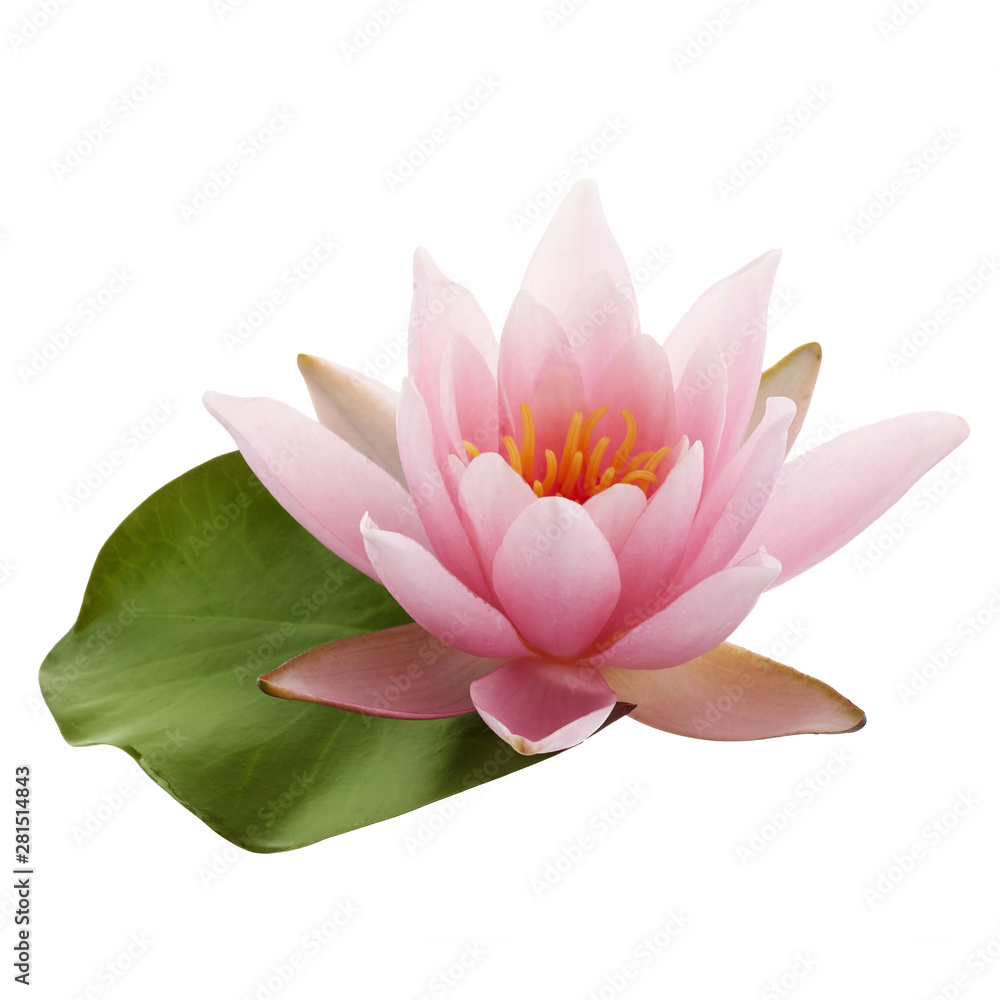 Pink Lotus Flower Or Water Lily With Green Leaf Isolated On White Background Stock Photo Adobe Stock